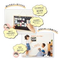 ・週の予定かくにんを忘れずできる♪・習い事、学校、おうちの予定に対応できる45種類の項目シール付き・四角マグネット33コ(無地3コ)、矢印マグネット4コ・裏面はホワイトボード