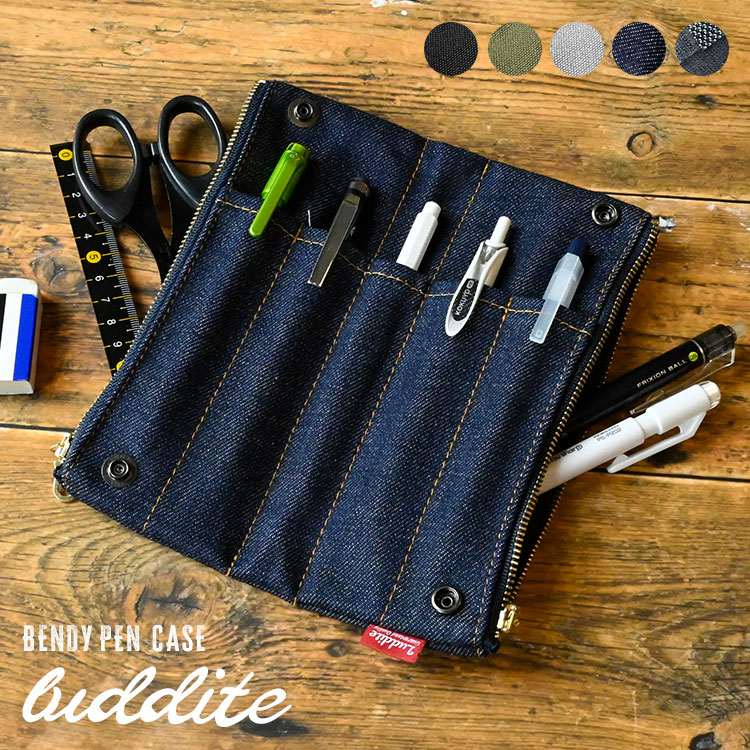 機能とデザインの融合で人気のラダイト 「ベンディペンケース」。開くとペンを1本ずつ収納できるようになっており、よく使うペンの位置をすぐに把握できます。ファスナーは信頼のYKK製でスムーズに開閉可能。素材は岡山デニムと倉敷帆布の2種類の素材からお選びいただけます。