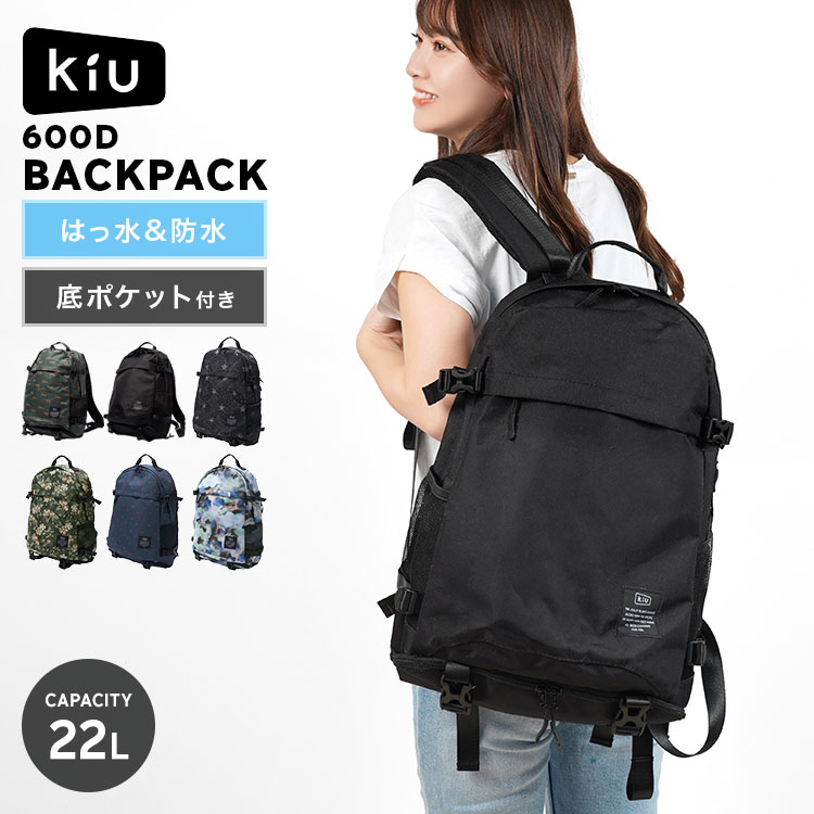 KiU リュック レディース メンズ 22L 大容量 撥水 防水 キウ 600D バックパック K111 大きめ A4 軽量 靴収納付き 黒