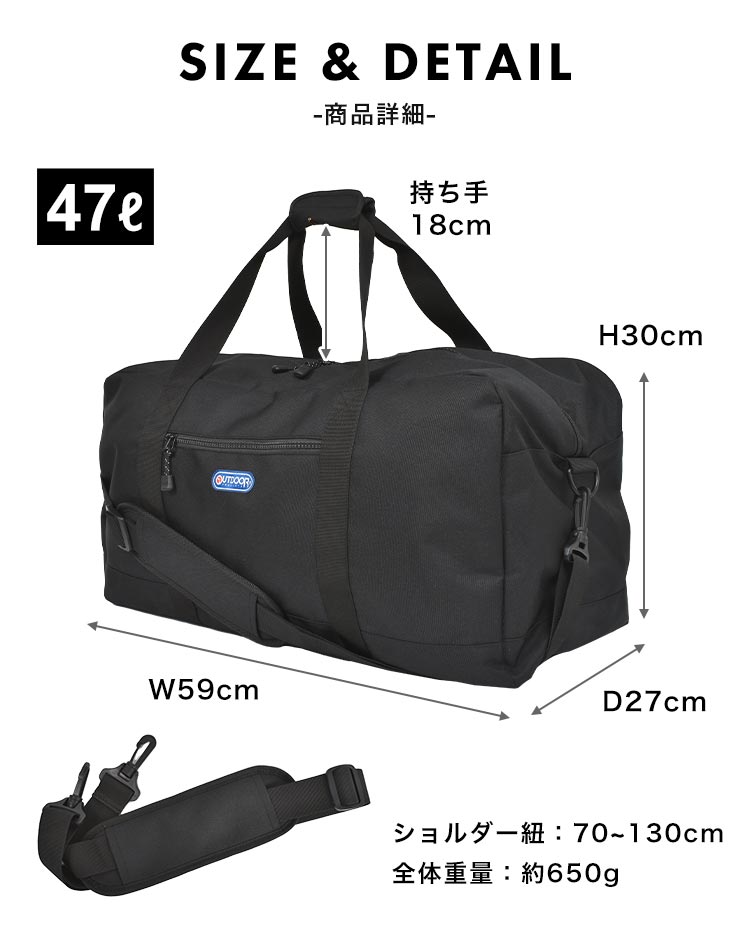 ボストンバッグ 旅行 OUTDOOR PRODUCTS アウトドア プロダクツ メンズ レディース 大容量 ショルダーバッグ 2way 47L 修学旅行 大きい 通勤 通学 大型 シンプル