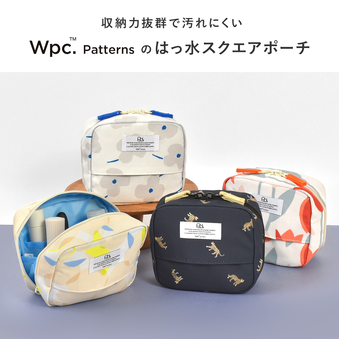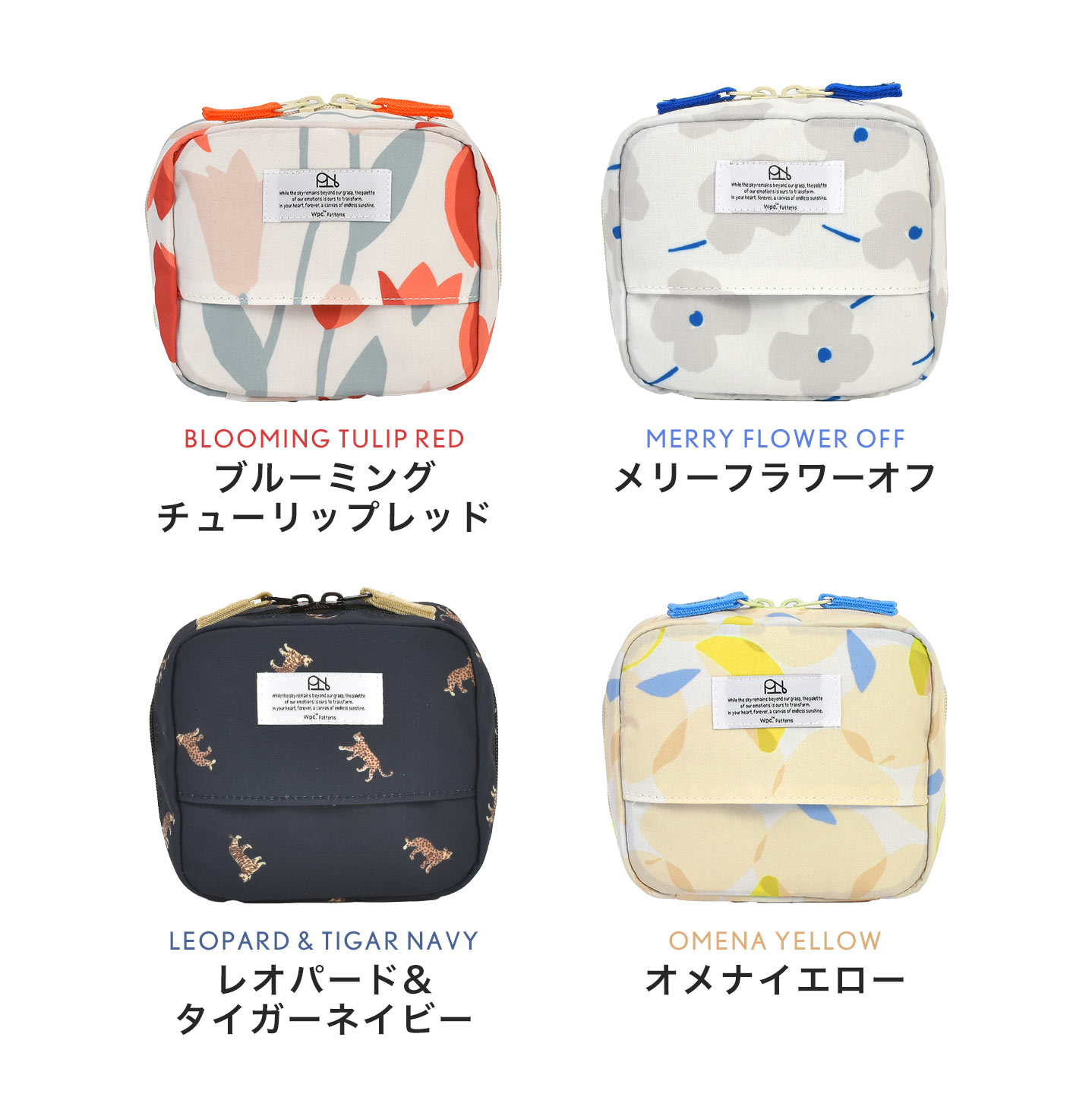 ポーチ Wpc. Patterns ダブリュピーシーパターンズ メイクポーチ 大容量 収納 仕切り付き ティッシュポケット スクエア マルチポーチ 撥水 旅行 トラベル グッズ ポケット 整理整頓 ティッシュケース レディース 女性 かわいい おしゃれ はっ水 ダブルファスナー 化粧ポーチ 可愛い 大きく開く 入れやすい 見やすい 汚れにくい 自立 ガバッと開く 花柄 女子 学生 社会人 誕生日 プレゼント ギフト トラベルポーチ ケース 化粧 レッド ネイビー ブルー イエロー 赤 青 黄色 紺色 ブルーミングチューリップ メリーフラワーオフ レオパード&タイガー オメナイエロー blooming turip はっ水