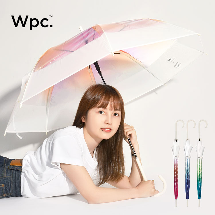 見る角度によって色が変化するWpc.グラデーションのビニール傘。見る角度によって色味が変わるグラデーション。目を惹きつつもこなれな印象を演出してくれます。