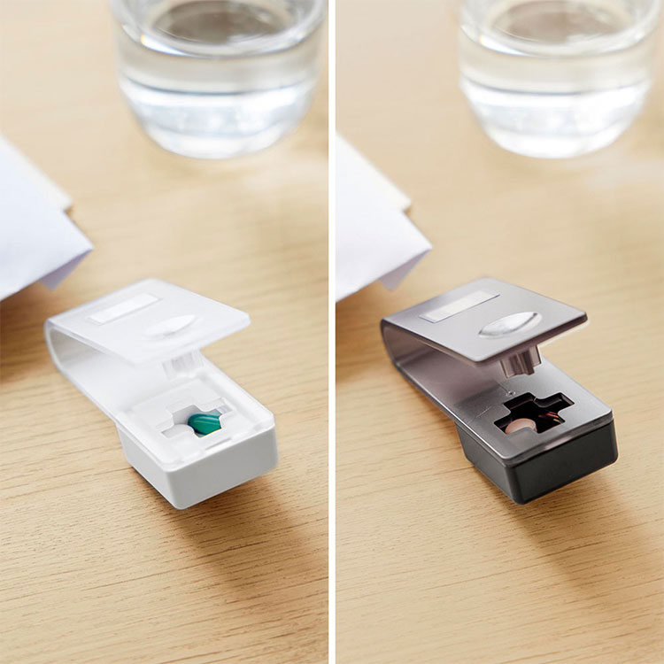 ワンプッシュで簡単に錠剤を取り出せる、マグネット収納対応の錠剤オープナーです。個数や種類が一目でわかり、飲み忘れ防止にも役立ちます。錠剤は受け皿に溜まるので取り出しやすく、スライドするだけでサッと取り出せます。ウォーターサーバー横や冷蔵庫横など、手に取りやすい場所にマグネットで設置すれば、お薬タイムがよりスムーズになります。