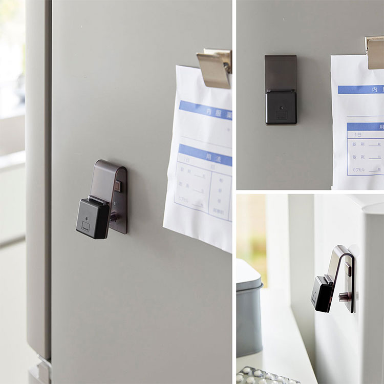 ウォーターサーバーや冷蔵庫の横など、マグネットが付く場所に浮かせて収納できます。手に取りやすい場所に収納しておくことで、お薬タイムがよりスムーズになります。