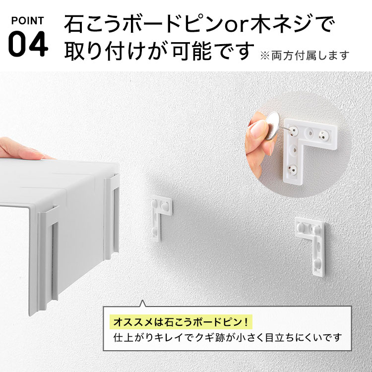 石こうボードピンまたは木ネジで取り付け可能。