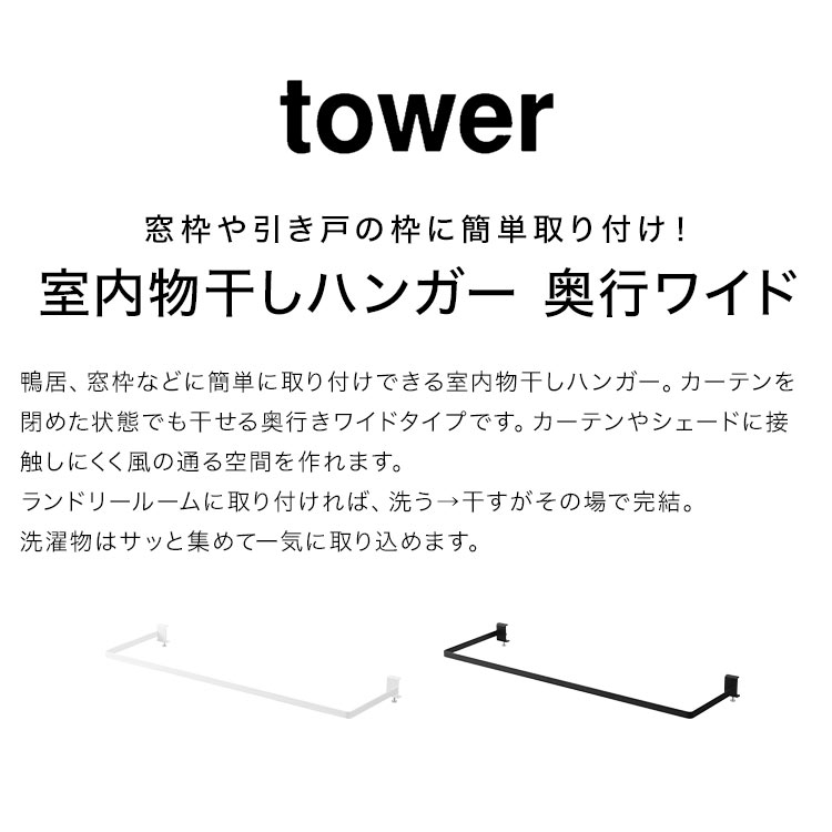 室内物干し 窓枠取付 窓枠タイプ 室内物干し掛け コンパクト 山崎実業 tower タワー 1741 1742 引き戸 スライド扉 鴨居 簡単取付 ランドリールーム
