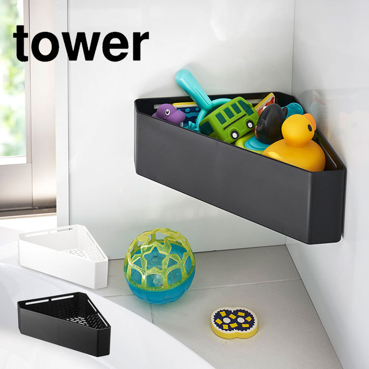 おもちゃ ラック お風呂 マグネット タワー tower コーナーラック 収納 おもちゃ入れ 壁面 整理整頓 三角 ホワイト ブラック 送料無料 山崎実業 4264 4265
