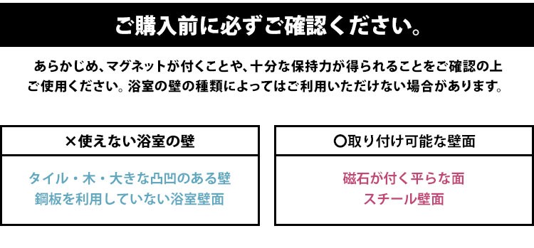 マグネットで壁の角に付けられるので浴槽横にスペースがなくても大丈夫です◎