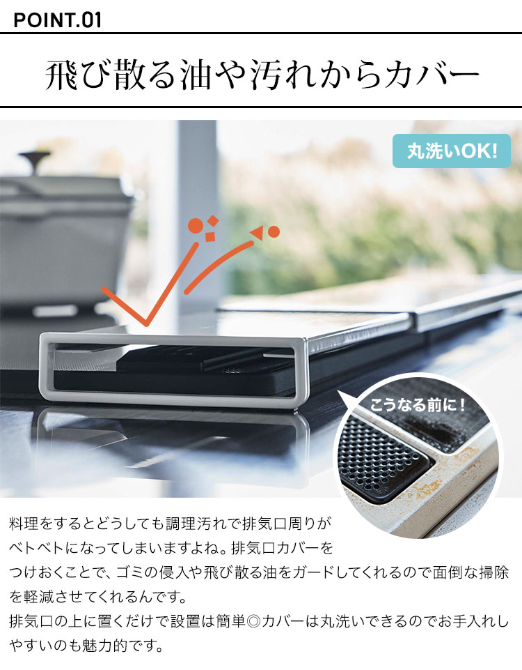 排気口カバー フラットタイプ tower 5732 5733 ガスコンロ 排気口ガード 42.5〜75cm対応 タワー IH ブラック 伸縮 洗える おしゃれ 山崎実業 油はね ガード