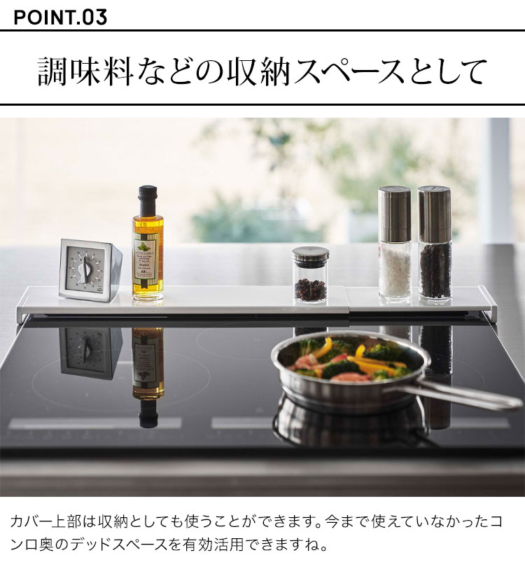 カバー上は調味料や小物の収納、鍋の一時置きなどにも使えて便利◎