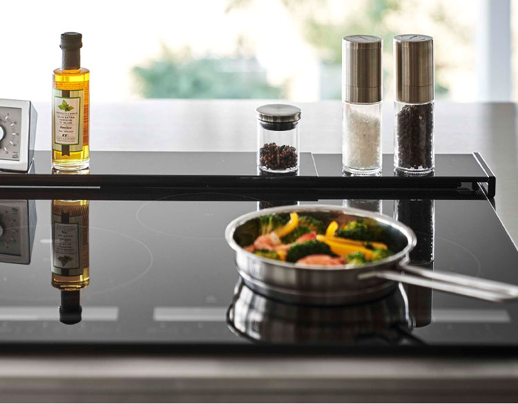 高さの低いフラットタイプなので油飛びや調理中のゴミが入りにくく、見た目もスタイリッシュ。
