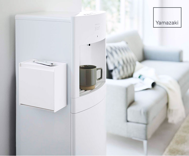 マグネット対応なのでウォーターサーバーや冷蔵庫横に貼り付けて使用できるので「浮かせる収納」が叶います。