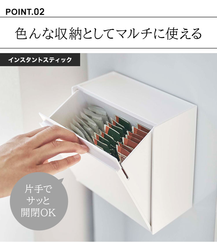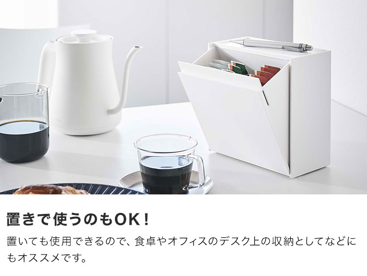 フラップ式だから片手で開閉楽チン!お家や会社に置いてあるインスタントスティックを綺麗に収納できるtowerのマグネットインスタントスティックホルダー。マグネット対応なのでウォーターサーバーや冷蔵庫横に貼り付けて使用できるので「浮かせる収納」が叶います。ホルダーとしてだけでなく、ポリ袋をセットしてゴミ箱としてや、マドラーやシュガー、お薬入れとしてなど小物入れとしても◎シンプルだから様々な使い方ができちゃいます。
