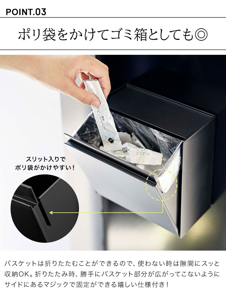 ホルダーとしてだけでなく、ポリ袋をセットしてゴミ箱としてや、マドラーやシュガー、お薬入れとしてなど小物入れとしても◎