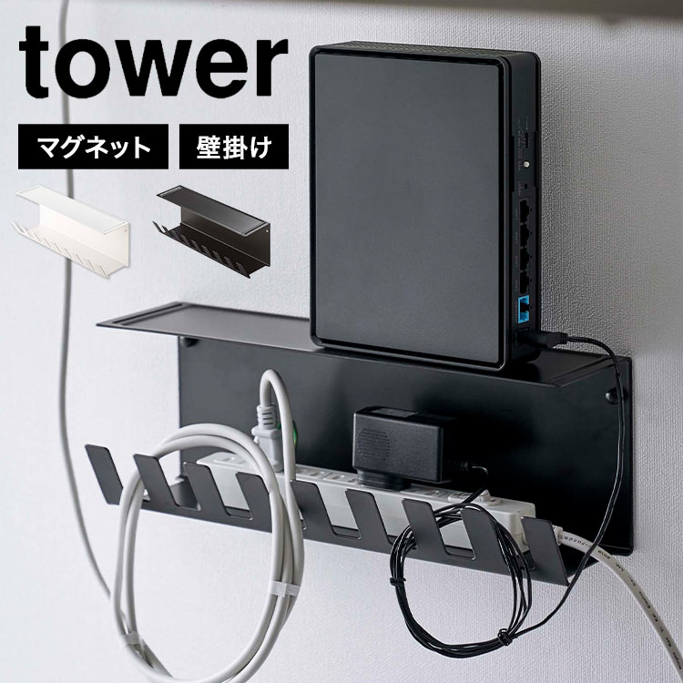 山崎実業 デスク下電源タップ収納ラック タワー tower 6049 6050 コード収納ボックス ルーター収納 ケーブル オフィス マグネット 木ネジ 石膏ボードピン