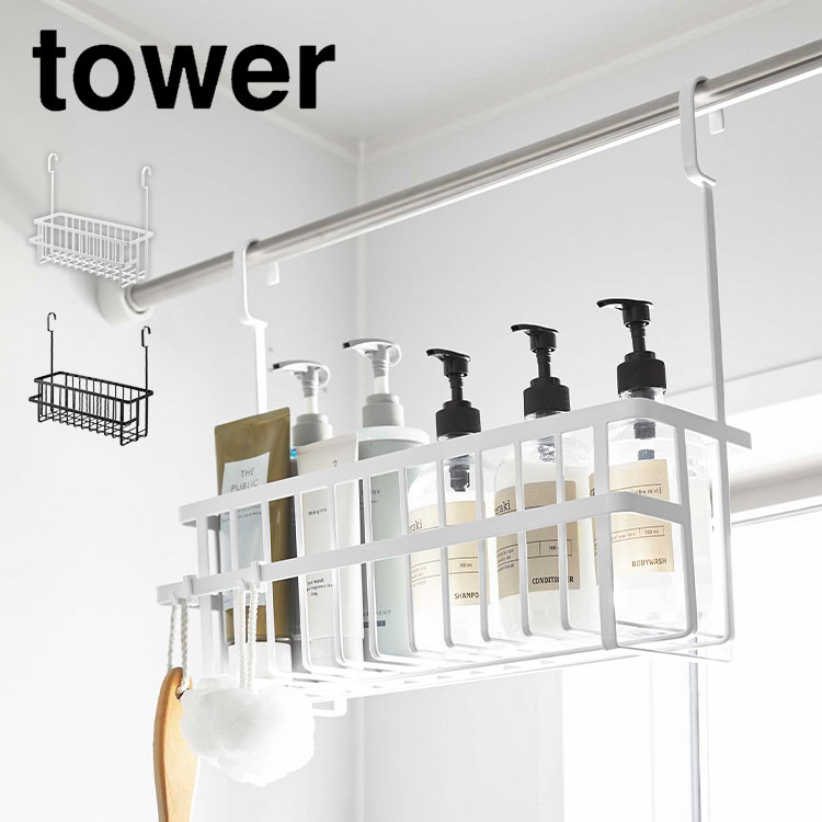 引っ掛けバスルームバスケット ワイド タワー 山崎実業 6617 6618 tower ハンギングバスケット 引っ掛け かご 収納 大容量 浴室 お風呂 バスグッズ 浮かせる収納