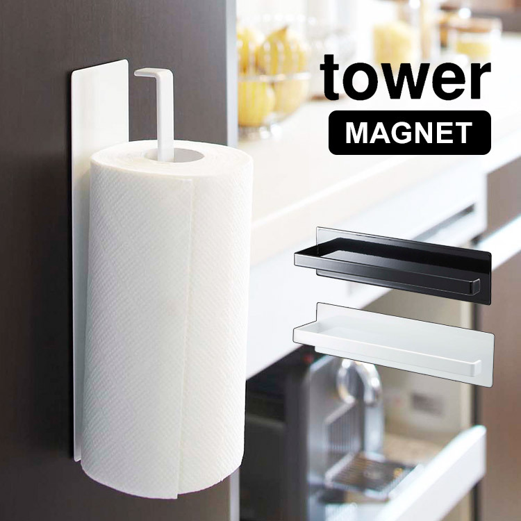 マグネットキッチンペーパーホルダー tower 山崎実業 ペーパーホルダー マグネット タワー 冷蔵庫横 タオルホルダー タオル掛け キッチン収納 7127 7128