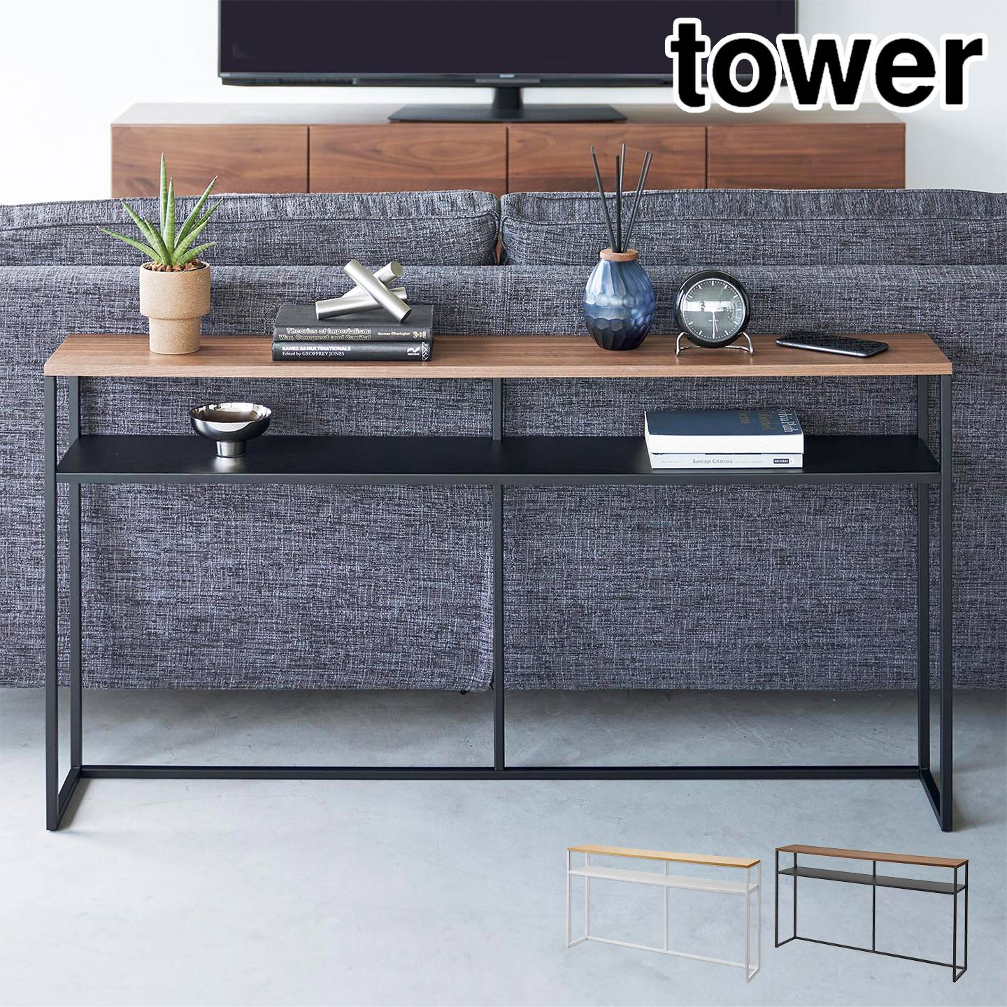 山崎実業 ソファー裏コンソールテーブル タワー 棚付き 2028 2029 tower 公式 コンソールテーブル スリム おしゃれ ソファ 裏 背面 テーブル 玄関 廊下 オープンラック 家具 収納 リビング シェルフ 北欧 木製 スチール 高級感 インテリア ホワイト ブラック コンソールデスク 天然木 机 スリムテーブル バックテーブル ソファテーブル デッドスペース 省スペース モノトーン シンプル 黒 白 ワイド 収納棚 飾り棚 ディスプレイ 棚 ディスプレイラック オープン棚 ソファ裏コンソールテーブル リビング収納 玄関収納 ちょい置き 一時置き インテリア収納 スタイリッシュ 新生活 山実 やまじつ ヤマジツ やまざきじつぎょう たわー towerシリーズ ブランド インテリアブランド yamazaki Tower Long Console Table