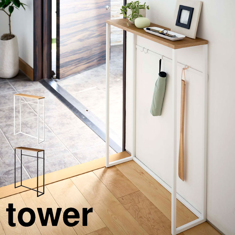 コンソールテーブル tower 飾り棚 タワー 玄関 スリム 棚 山崎実業 おしゃれ シンプル ブラック ホワイト 棚 高さ80cm 小物置き 消毒液 フック付き 5164 5165