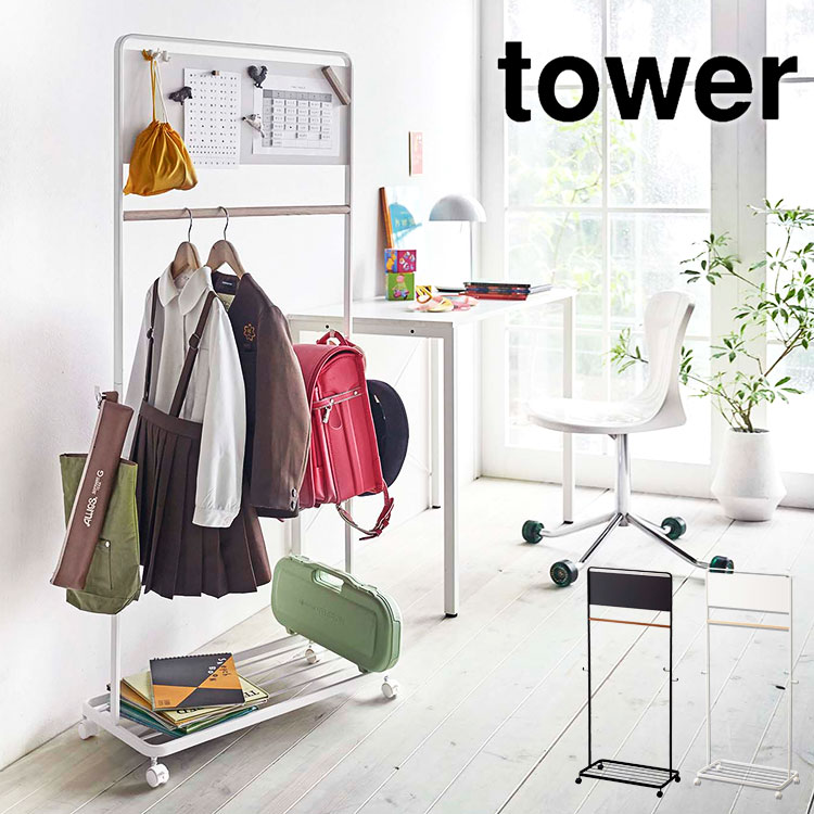 ハンガーラック tower キッズ ランドセルラック 子ども 山崎実業 パネル付きハンガーラック ランドセル収納 ラック タワー シンプル 送料無料 5175 5176