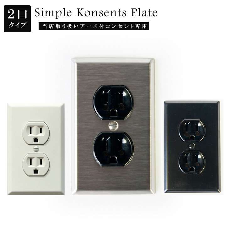 アース付きコンセント専用 コンセントプレート シンプルコンセントプレート 2口 ステンレス ブラック ホワイト JO193 おしゃれ レトロ 倉庫