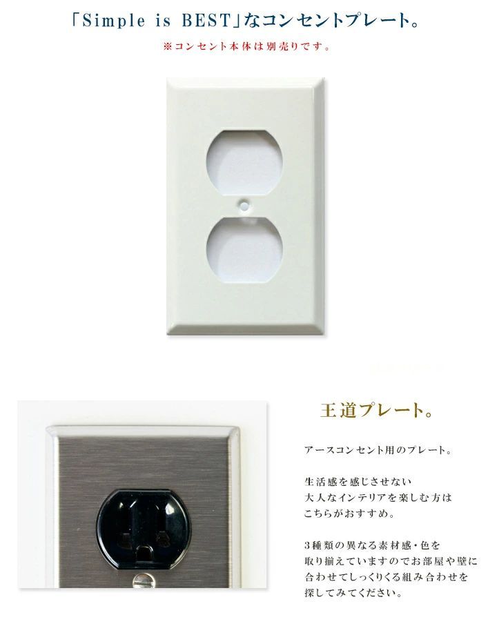 ※当店取り扱いのアメリカンコンセント専用のプレートです。組み合わせてお使いください。他、類似商品との整合性は保証できかねますのでご注意ください。