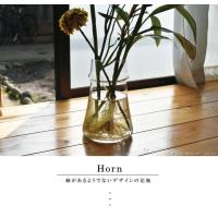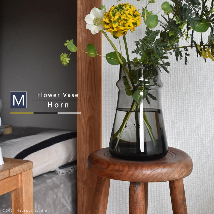 花瓶 北欧 ガラス フラワーベース 枝物 Mサイズ:約11cm丸×16cm(口径:7.3cm) グレー クリア イエロー ガラスベース おしゃれ 【6802】HORN