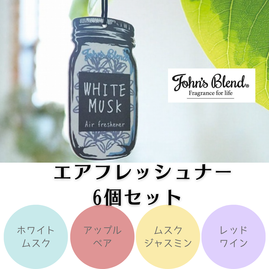 6点セット ジョンズブレンド John’sBlend エアフレッシュナー車 吊り下げ 芳香剤 カーフレグランス ホワイトムスク ムスクジャスミン ペアー ワイン 爆買