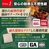 ○断熱効果の高い生地を使用しておりますが、高温で燃焼中の薪や炭を長時間に渡って直接置いた場合、徐々に熱が伝わり地面の草木や床材等が焦げる可能性があります。十分にご注意ください。(生地に穴が空くことはありません)