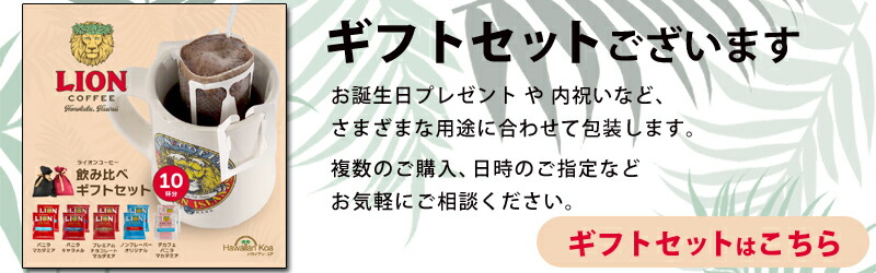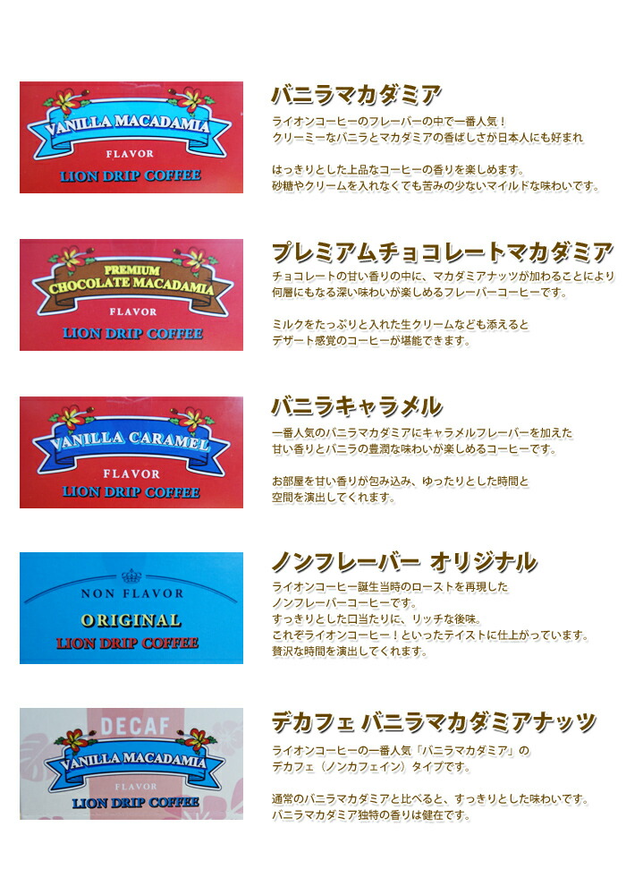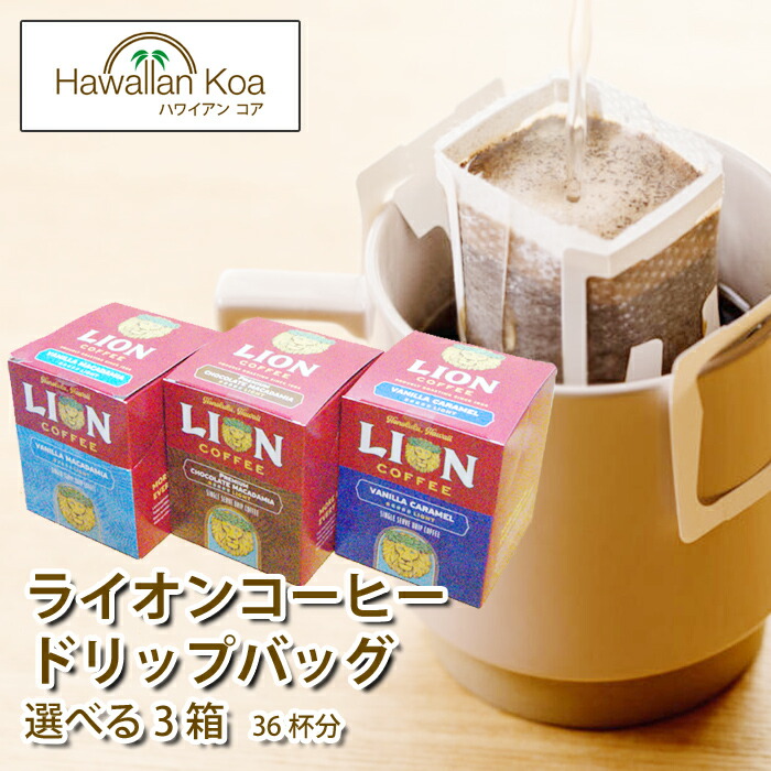 他にもたくさんありますよ♪ハワイの有名なコーヒーブランド「ライオンコーヒー」のお手軽ドリップバッグ、3箱を選べるお得なセットです。