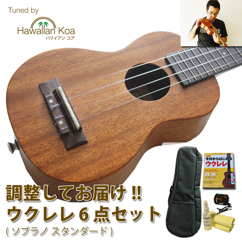ウクレレ 初心者 セット スタートアップ 6点セット ソプラノウクレレ マホガニー材 ギアペグ 失敗しない 調整してお届け
