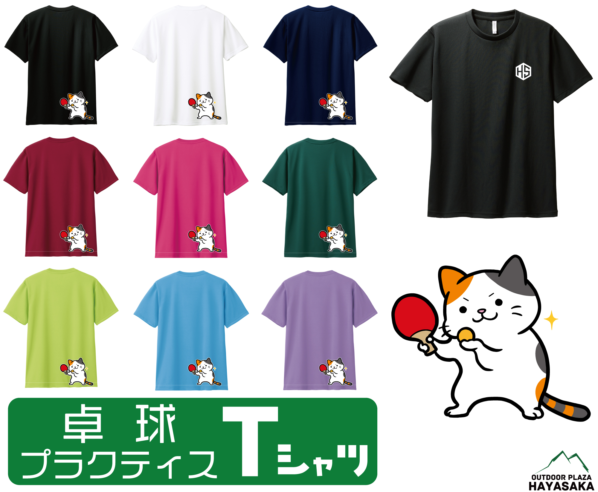 ・UVカット【卓球 ミケねこシリーズ】のドライTシャツ。