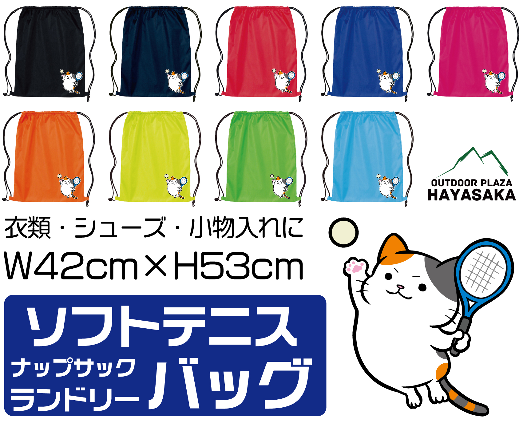 【ソフトテニス】ナップサック ランドリーバッグ マルチ袋 ケース リュック 42cm×53cm【786】【ミケねこ】【ジャンプ】