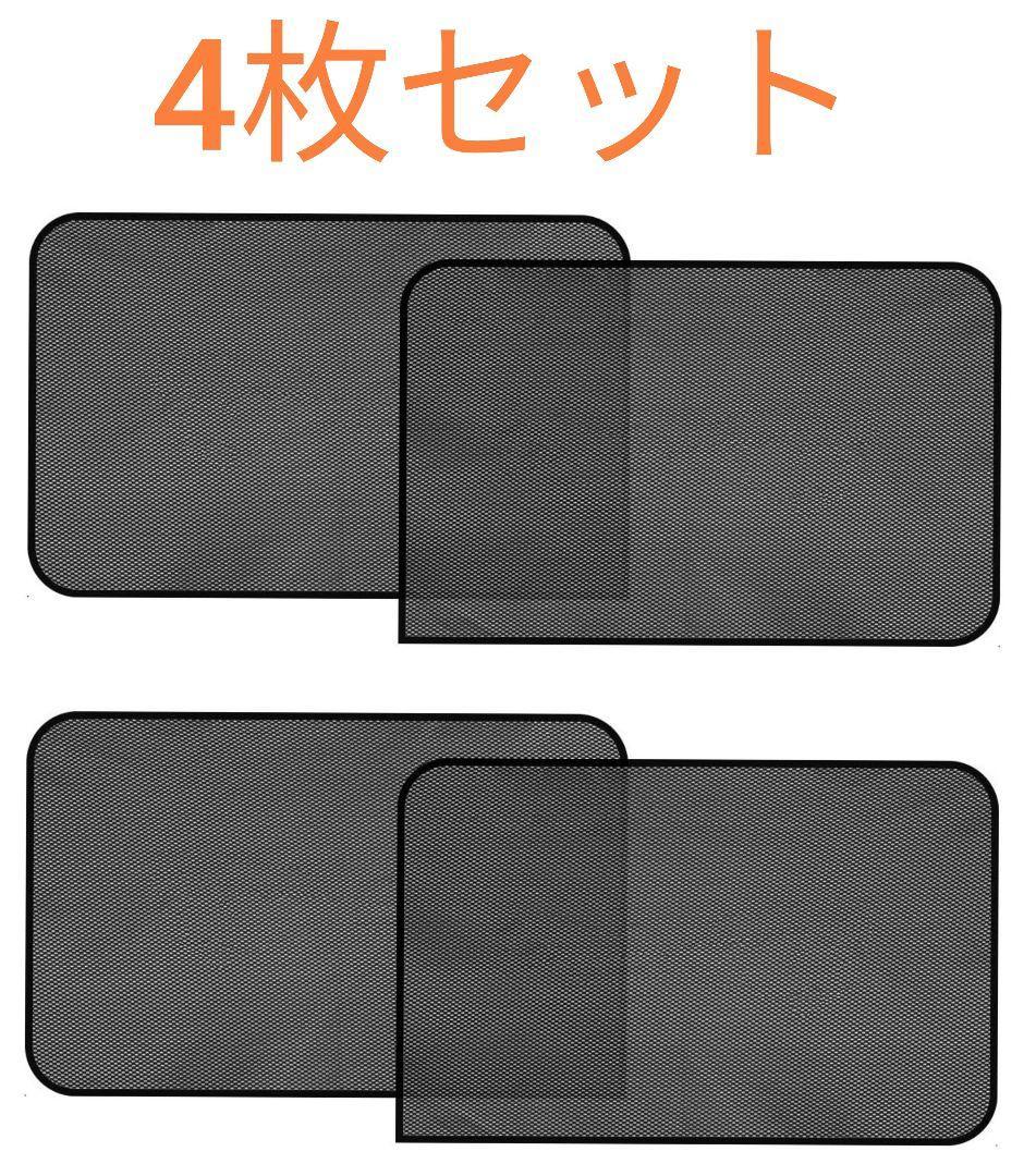 四角4枚セット 車用サンシェード 車中泊 磁石カーテン 日よけ 磁石内蔵 車用網戸 マグネット式 遮光サンシェード (10個内蔵磁石移動可能、間隔調整可能)