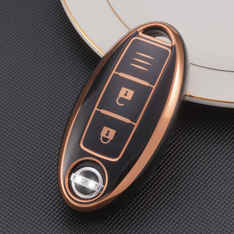 日産Nissan スマートキーケース TPU キーカバー ブラック×ゴールド 3ボタン