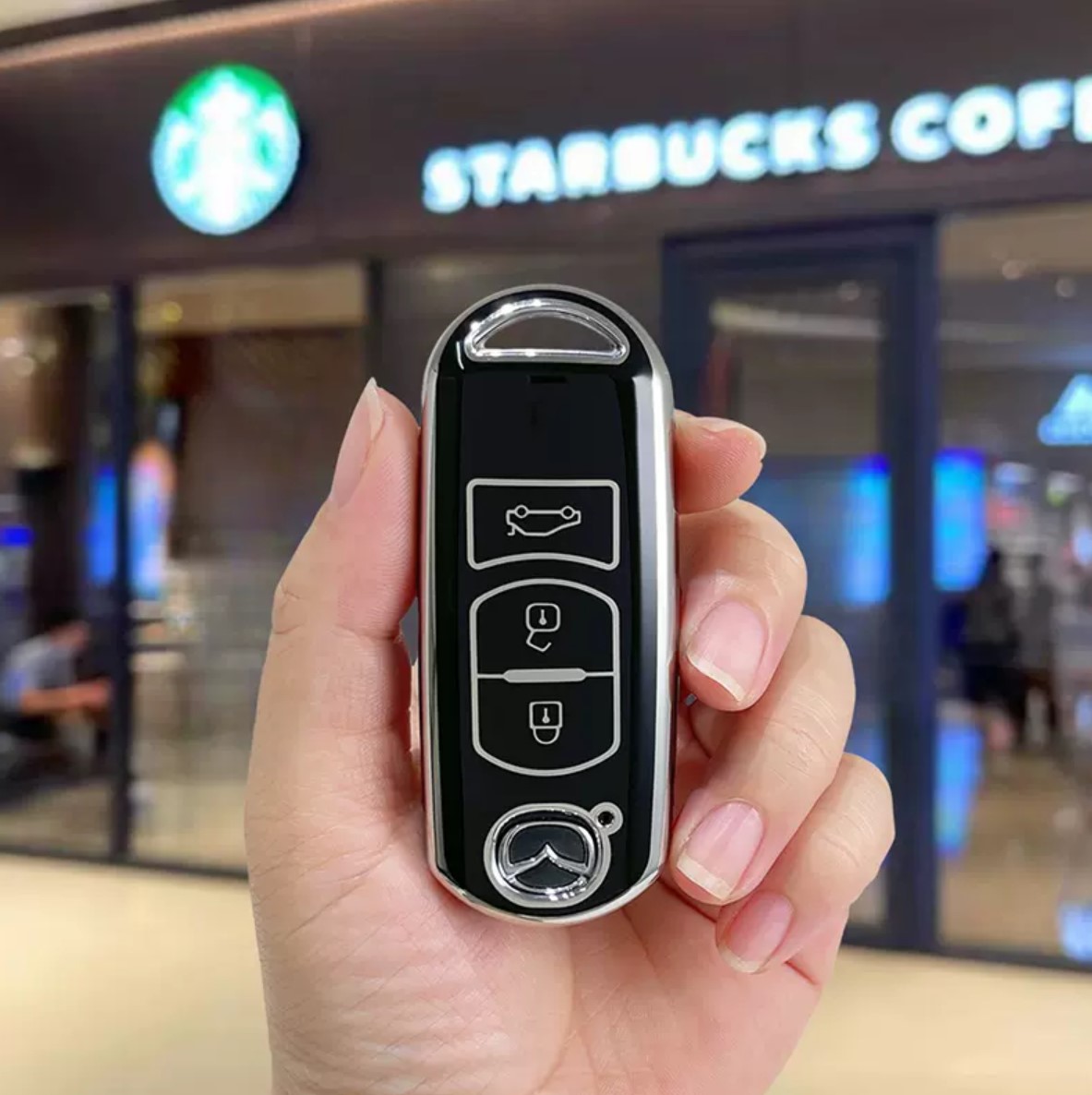 マツダ スマートキーケース TPU キーカバー CX-5/3 デミオ アテンザ ブラック×シルバー3