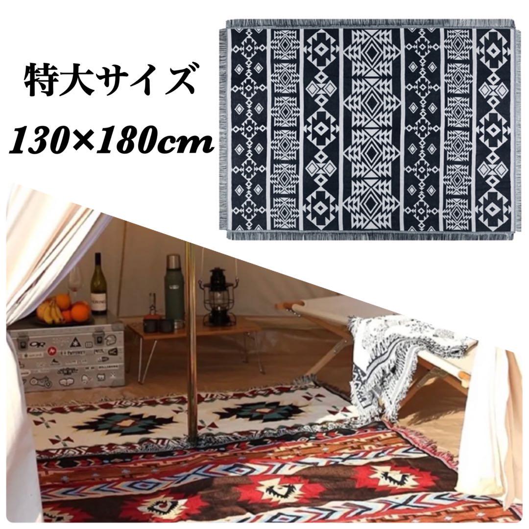アウトドア キャンプ ブランケット ラグマット 北欧柄オルテガ 白黒 キャンピングカー 民族柄 ネイティブ柄 グランピング お洒落 大きいサイズ 130×180cm