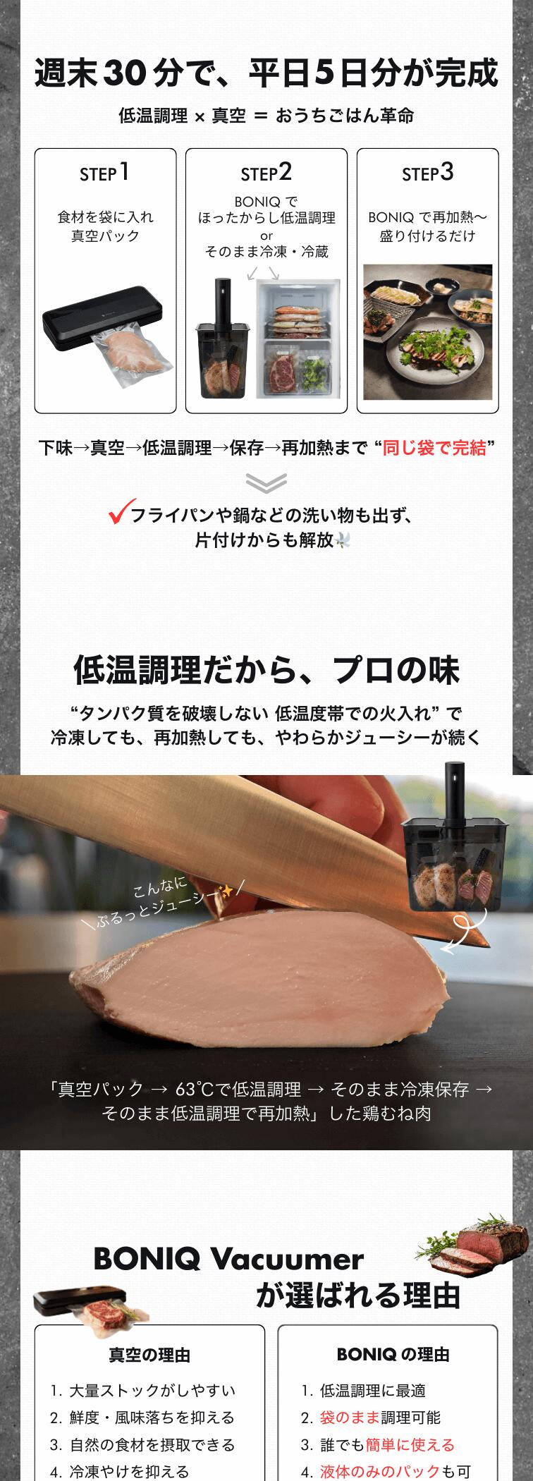 ●低温調理に最適化『低温調理 × 真空 =おうちごはん革命』