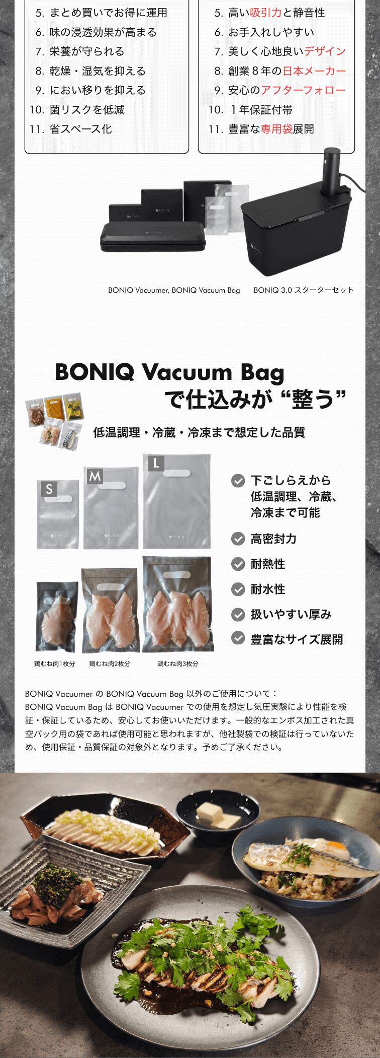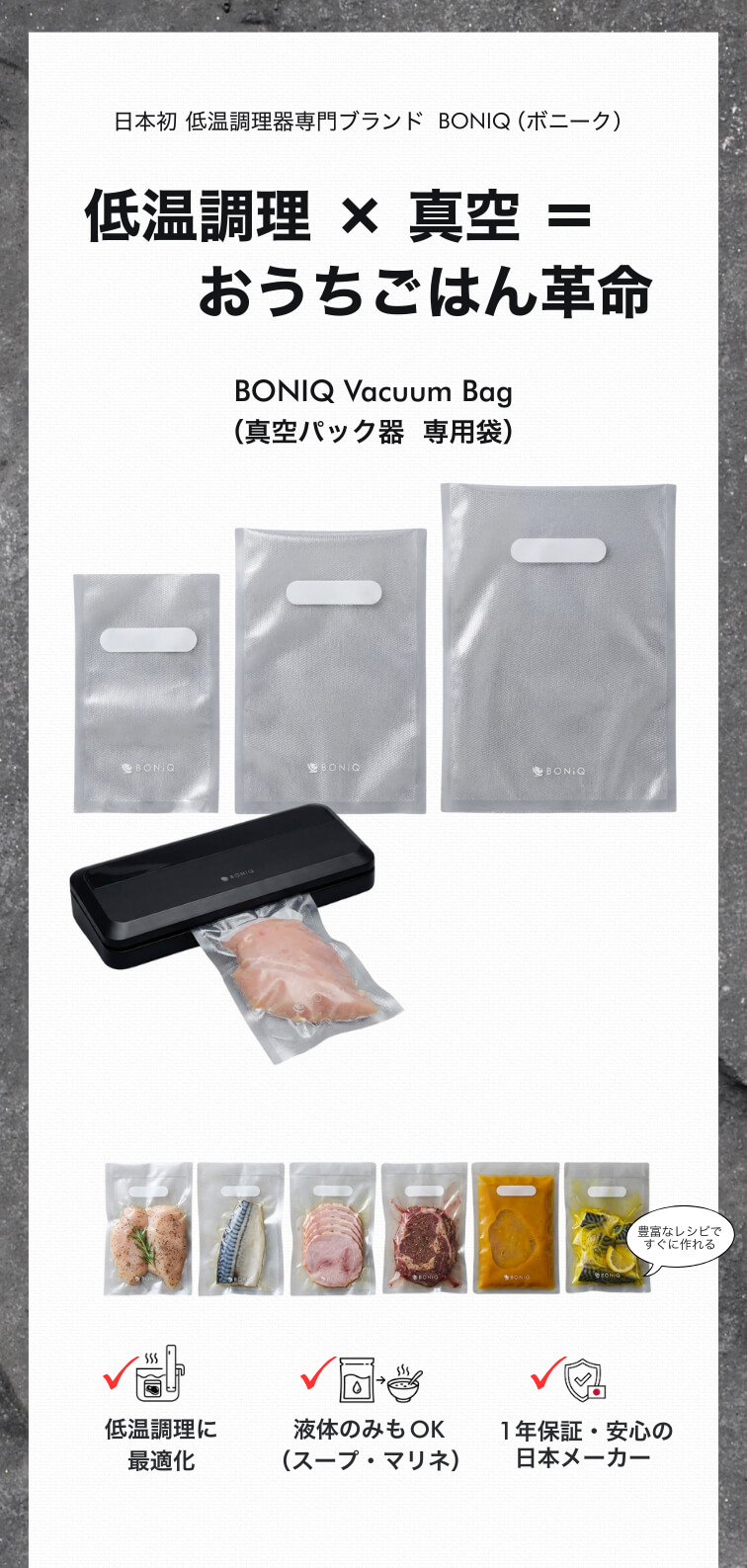 国内No.1 日本の低温調理器専門メーカー BONIQ(ボニーク)の「液体のみ」や「パン」もOKな真空パック器 BONIQ Vacuumer 専用袋