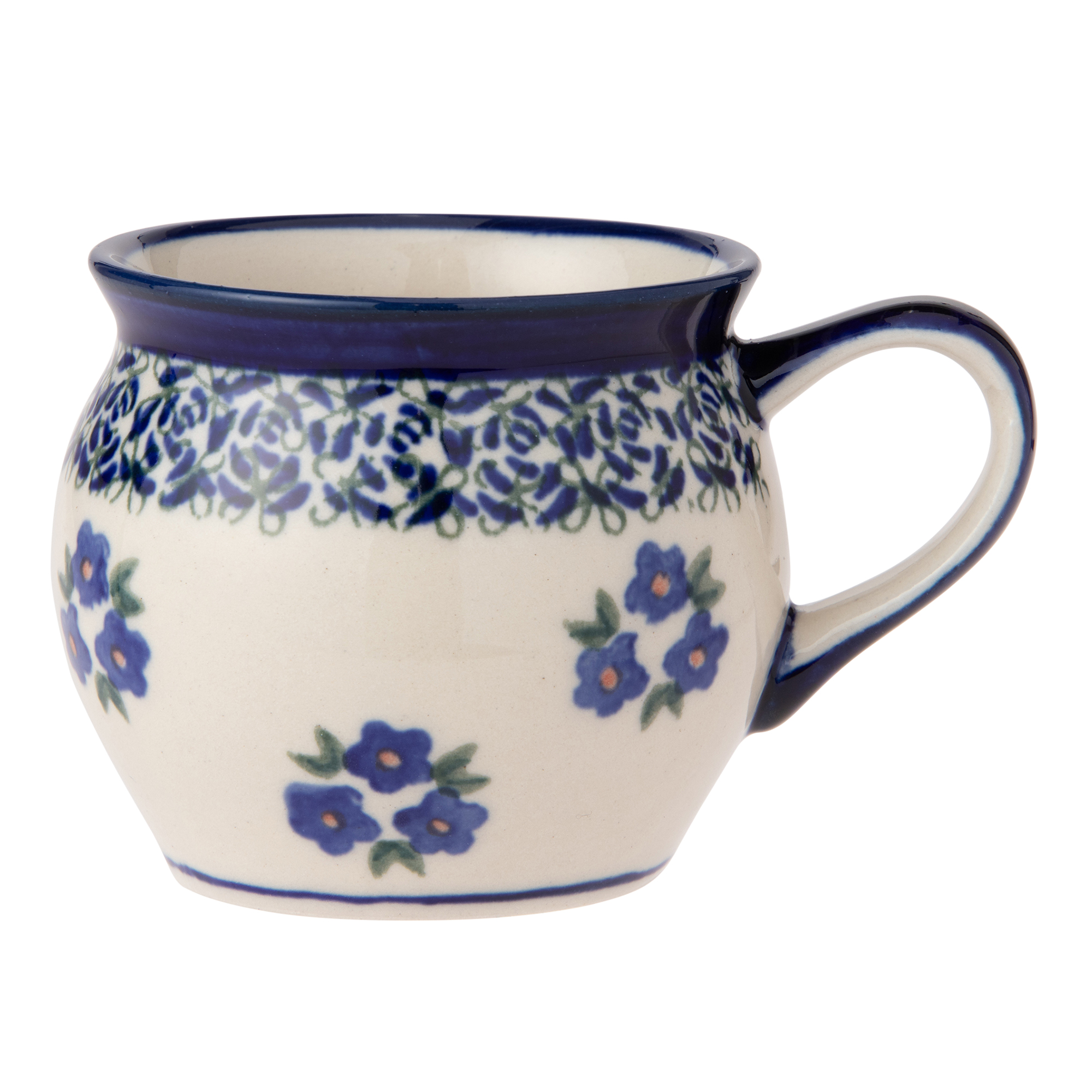 ポーランド陶器特有の丸いフォルムが可愛いマグカップです。 容量はデミタスサイズの0.16Lです。