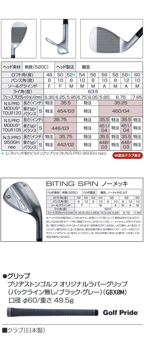 厳しい条件下でもスピン性能を高める新開発 『バイティングスピンIX ミーリング』を搭載 悪いコンディションのアプローチでも攻めていく 食いつくミーリングで止める ブリヂストンゴルフ BITING SPIN WEDGE バイティングスピン ウェッジ 特注カスタムクラブ |