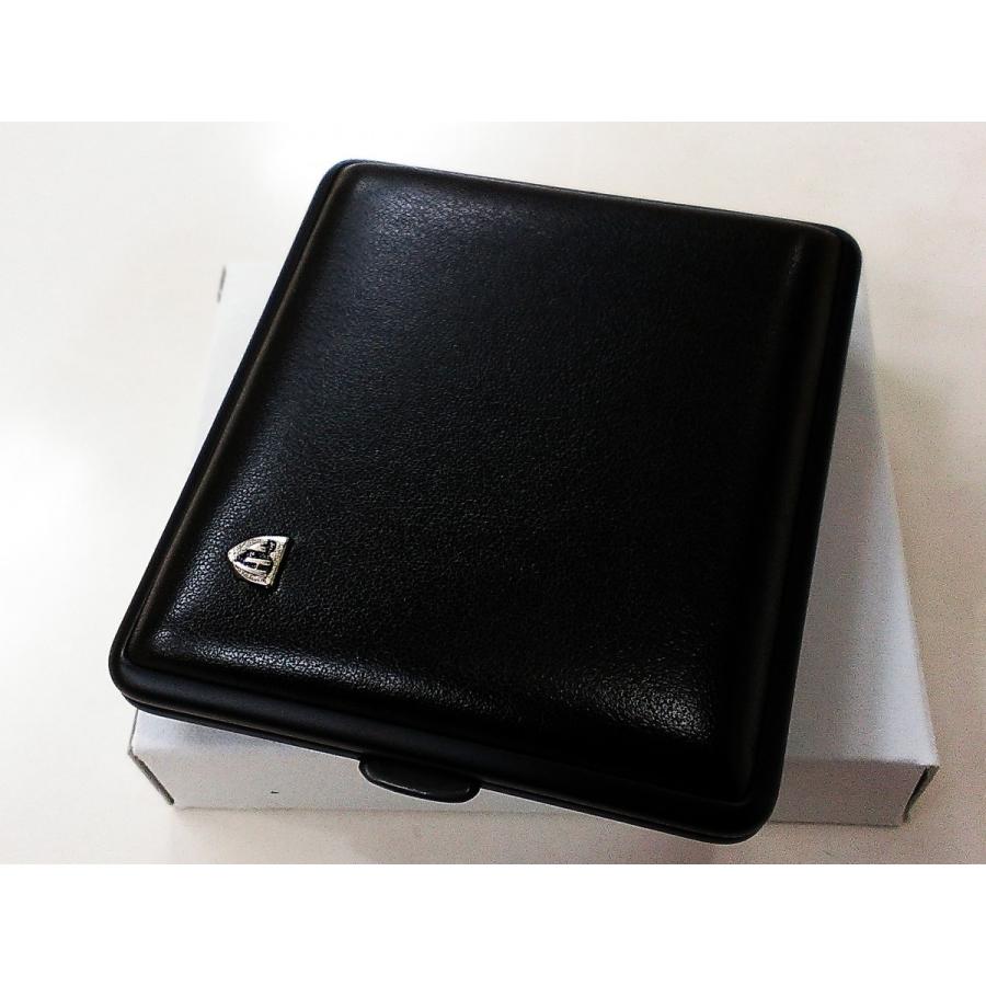 シガレットケース ドイツSTOLL社製 ブラックレザー&ブラックフレーム 黒 18本収納 おしゃれなタバコケース メンズ