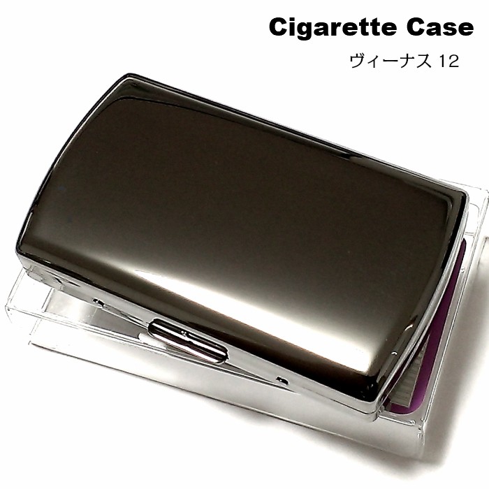 シガレットケース ヴィーナス 12本 ブラックニッケル タバコケース おしゃれ コンパクト たばこケース 85mm 黒 ミラー 煙草入れ 節煙 頑丈