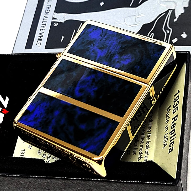 1935ベースの4面デザインされたマーブルブルーとゴールドが非常に高級感を醸し出すZIPPOライター。
