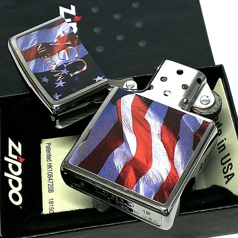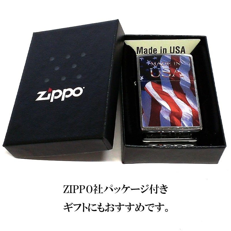 ZIPPO 星条旗 アメリカ シルバーサテン MADE IN USA ライター ジッポ USA 銀 かっこいい US 国旗 おしゃれ メンズ