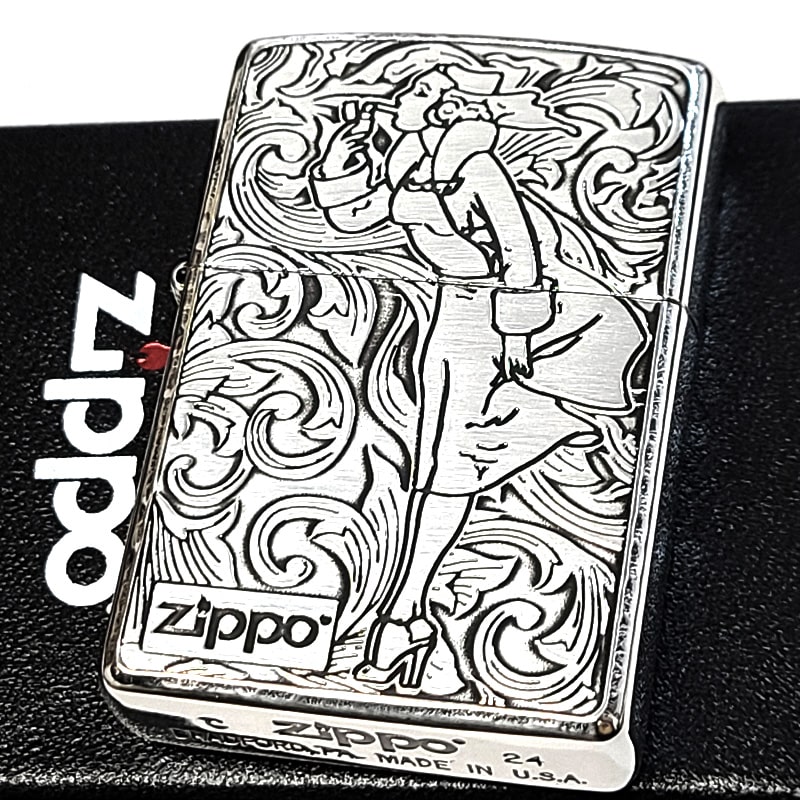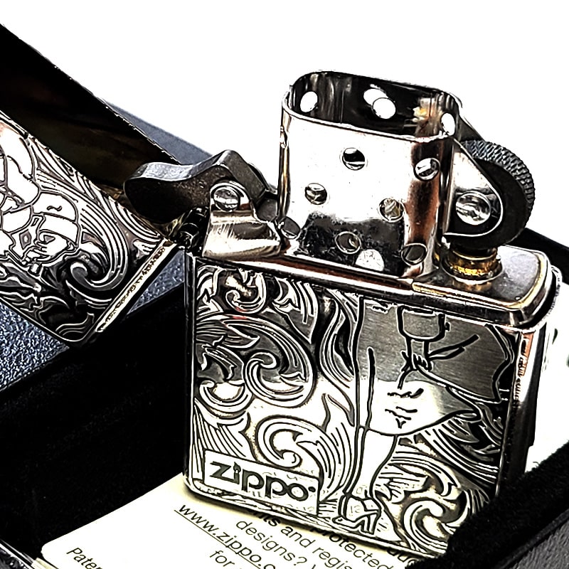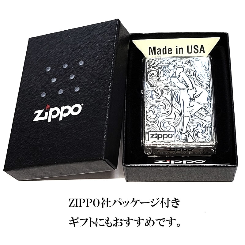ZIPPO ライター アラベスク ウィンディー ジッポ 両面加工 エッチング彫刻 マイルドリューターカット 銀 かわいい シルバー お洒落