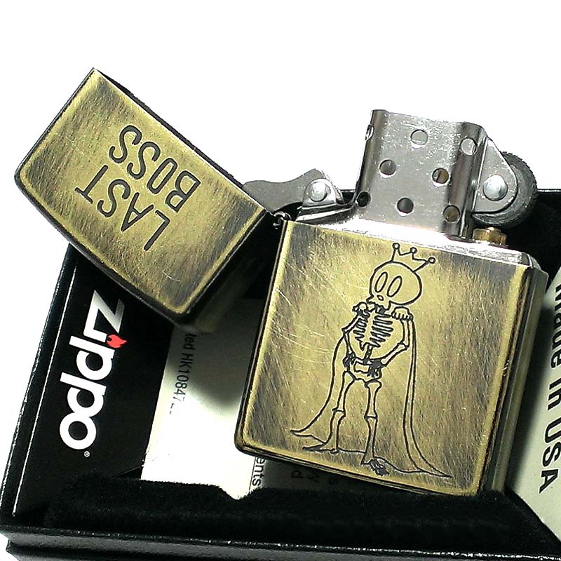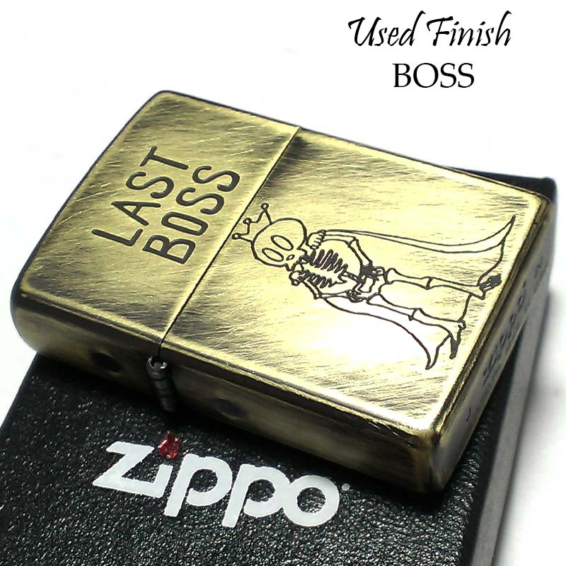 ジッポ ライター ユーズドフィニッシュ BOSS ZIPPO スカル 可愛い 彫刻 ブラス シンプル アンティークゴールド かっこいい
