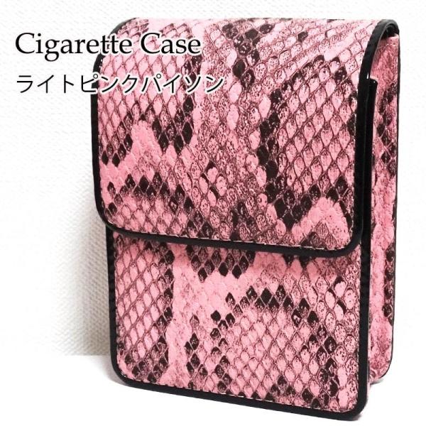 タバコケース ライトピンクパイソン 可愛い 型押し シガレットケース レディース 煙草入れ ロング シガレットポーチ