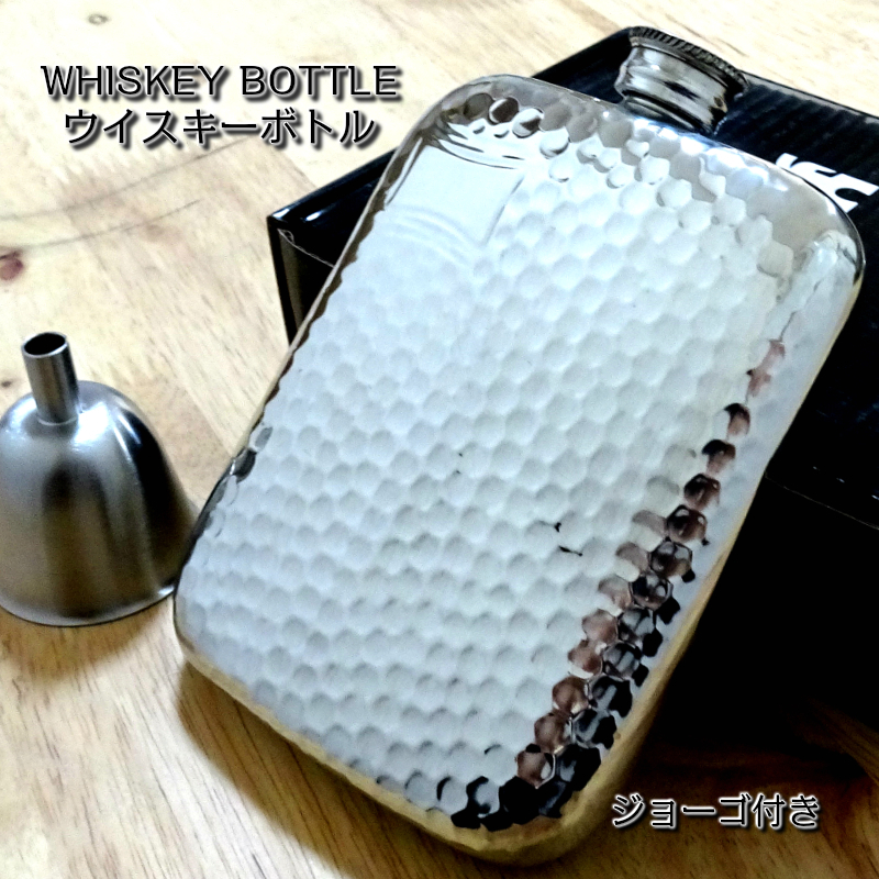 丸みを帯びた形が手になじむ、ハンマー加工のおしゃれなピューター製ウイスキーボトルです!
