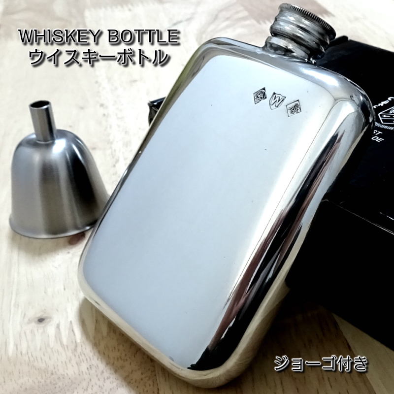 ウイスキーボトル イギリス製 ピンダー ピューター ジョウゴ付き ウォッカ ウィスキー キャンプ レジャー シルバー かっこいい ギフト